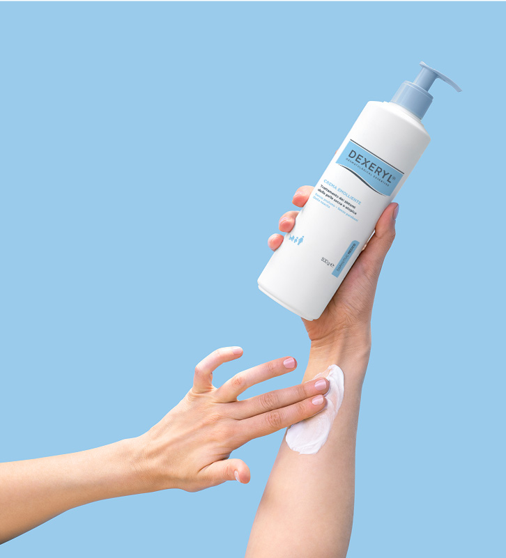 DEXERYL® crema emolliente è formulata per il trattamento dei segni e sintomi di secchezza cutanea (xerosi) grazie a: